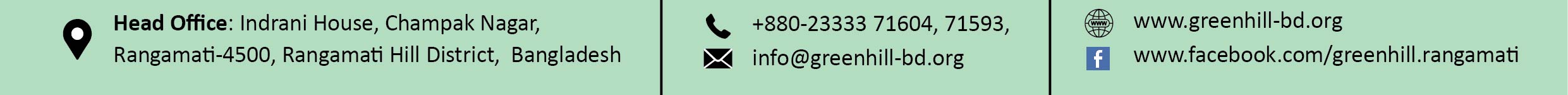 • এই বিজ্ঞপ্তিটি গ্রীন হিল ওয়েবসাইটে www.greenhill-bd.org ও গ্রীন হিল ফেসবুক পেইজে www.facebook.com/greenhill.rangamati পাওয়া যাবে।